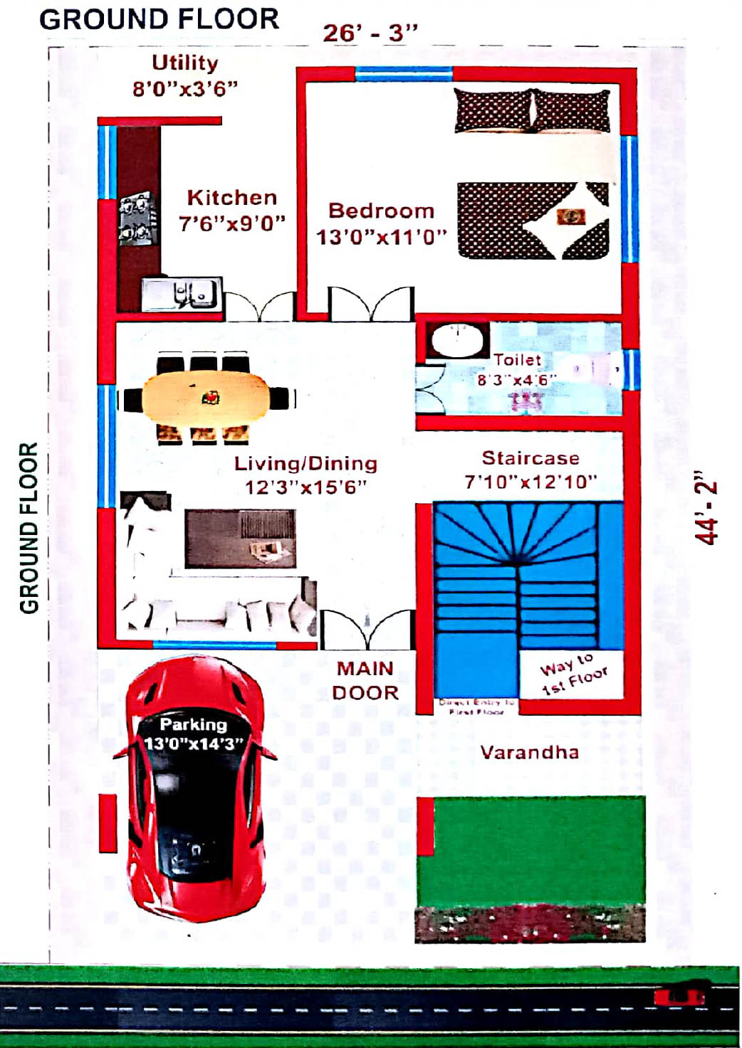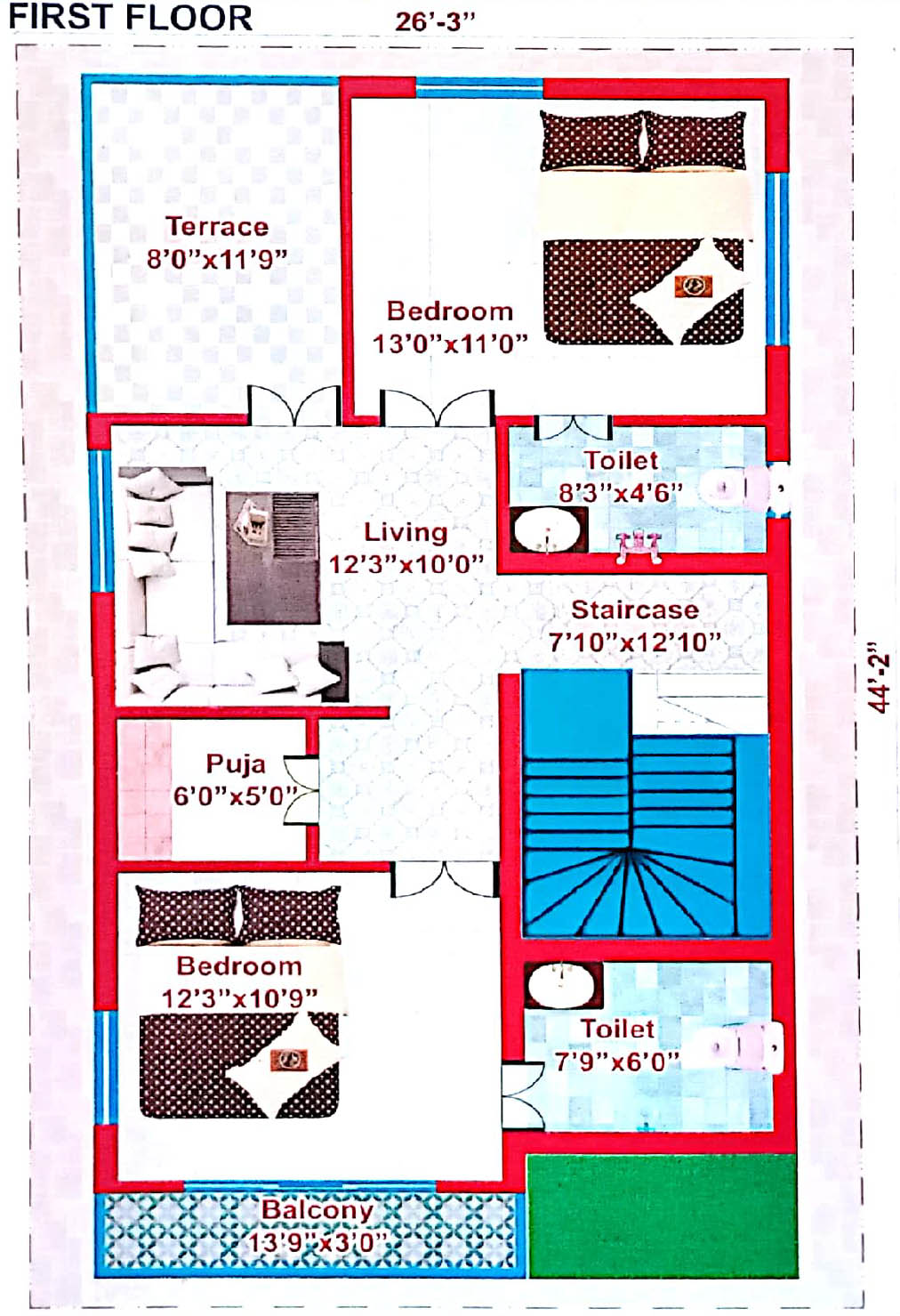 Designer range vitrified tiles inside the flat and corridors/common areas are finished with Kota/Marble/Tile design.