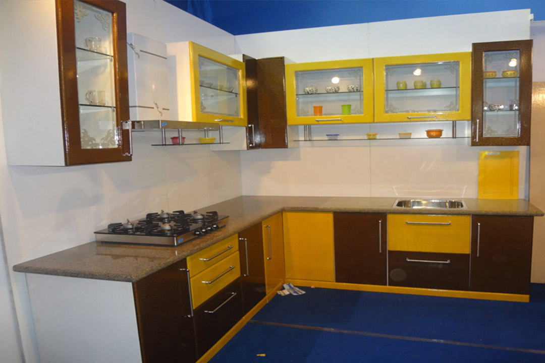 Cooking platform is of green marble, stainless steel sink and designer range of ceramic tiles cladding up-to 2’ height.